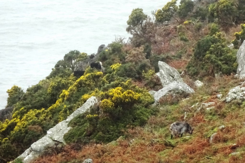 We decided that day to go for a couple of walks. The first of these was to the interestingly-named Valley of the Rocks, just a 40-minute walk from where we were staying. The place-name sounds like somewhere out of an Enid Blyton book to me [2], or maybe the title of some dodgy 70s adventure film, but even more exciting than that, and than the dramatic craggy scenery we found when we got there, was that the valley is home to a population of wild goats (those who know me in real life may know that I have a bit of a thing for goats!).