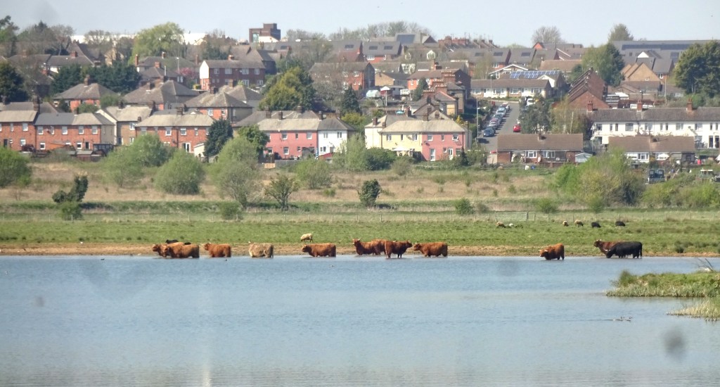 The other activity worth mentioning is that, on the Sunday morning, we went for a walk around the Irthlingborough Lakes and meadows – Irthlingborough sit just to the north of the River Nene, which in this area sits in a wide, flat, marshy valley with lakes all over the place. Despite it being extremely hot for April, was a really nice walk – the lakes were just very pretty, and we enjoyed clambering about among some trees. All in all, it was a really lovely weekend!