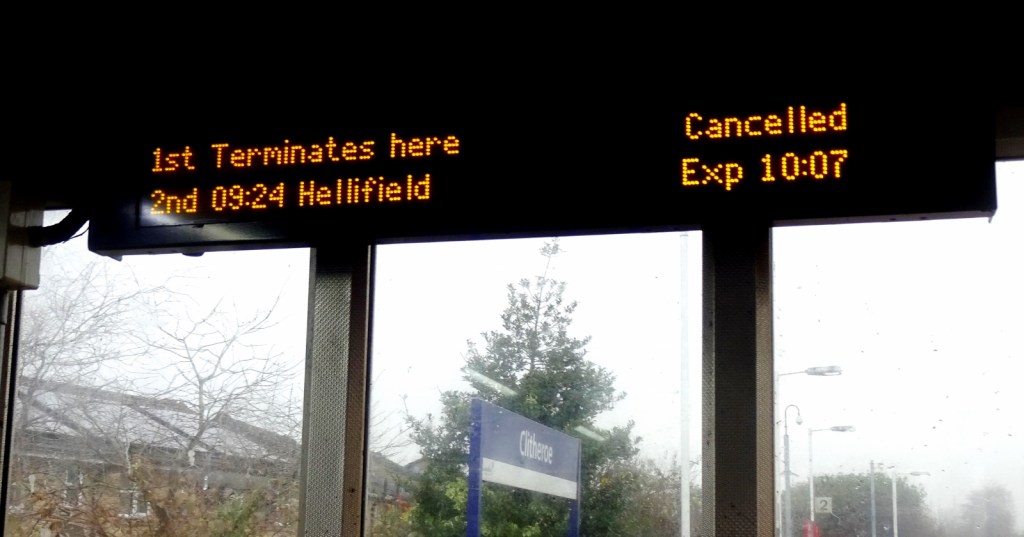 However, disaster soon struck. At the station, I found that the twice-daily service was delayed by about 45 minutes, meaning that I’d miss my connection to Kirkby Stephen in Hellifield, and, given the two-hourly service on the Settle and Carlisle Line, if I awaited the next train in Hellifield, would have only two hours at Kirkby Stephen if I wanted to be able to make my train back in the afternoon – nowhere near enough to do my intended walk.