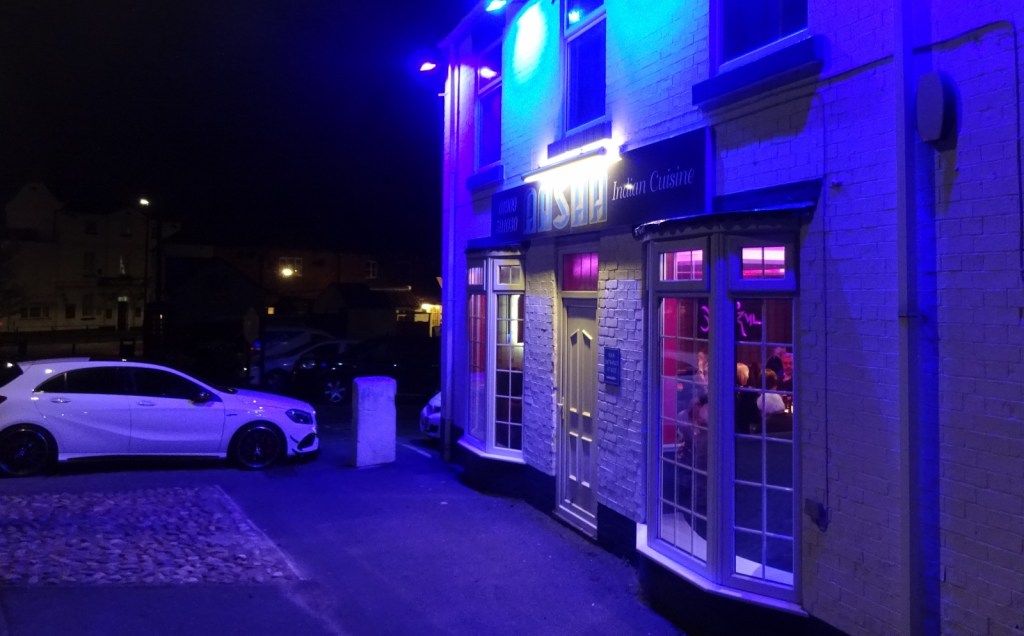 Our third attempt at finding an eatery was successful, though, at an Indian restaurant called Aasha. We passed a pleasant enough hour in there, eating poppadums, dipping sauces, and various vegetable curries with rice and naan bread; and admiring the head waiter’s impressive mullet (hairstyle, not fish). We did impressively well at ordering only an appropriate amount of food, which was fairly nice, even if lots of the dishes did taste fairly identical.