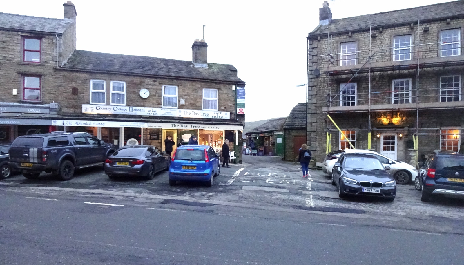 Skipping ahead a little, after several stops and visits over the map boundary, we returned to our friend map OL30 at around 2:45pm, seeking a “wee and tea stop”, as we put it. We therefore entered the little town of Hawes in search of such a stop. Hawes was very pleasant! Windy little streets, a little square in the middle, lots of little shops of the kind that tell you it makes most of its money from tourists of the kind who want tea, replacement wellies and some fancy chutney more than fridge magnets or designer handbags. After only a brief walkaround we found a café to seat ourselves in, and were soon happily eating extremely large slices of carrot cake.