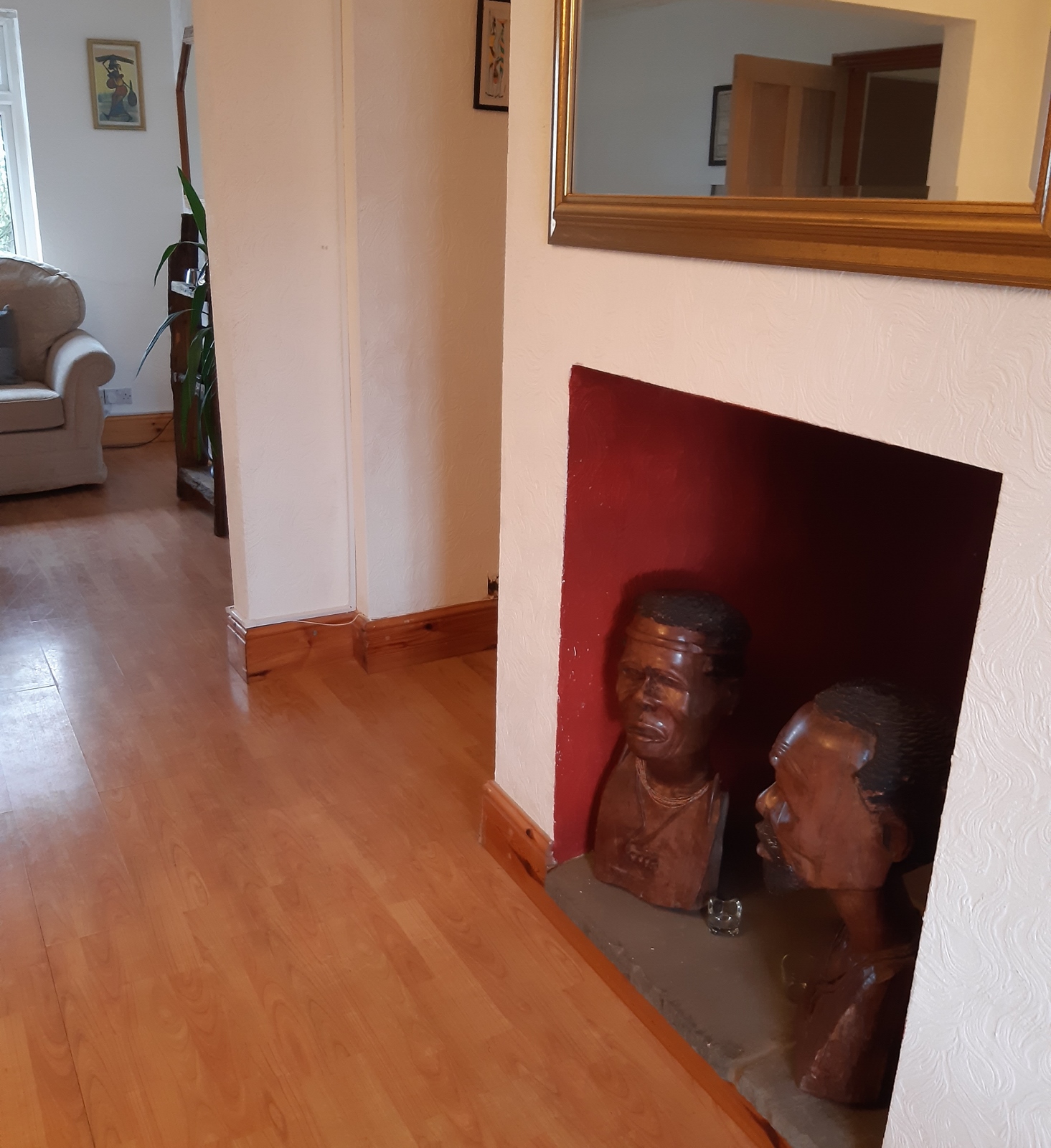 I drove up to the house on this Thursday morning, swinging by the office on the way to collect some practical items like a screen, flipchart, pens and the like; and also picking up a sandwich lunch for everyone later in the day. The others and the instructor joined me at the house. Somewhat unexpectedly for a house in the East Anglian countryside, it was decorated in an African theme – I think it’s sometimes used as some kind of African cultural center – so we had a good time exploring for a little while before our training started!