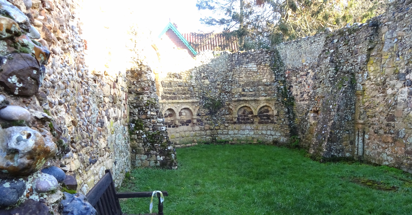 We then continued to see Greyfriars, Dunwich’s old Fransicscan friary, which is one of the only bits of the medieval town still visible, due to the fact that it was located just outside the old town walls on the inland side. The friary site’s outer walls are still very much present, now enclosing an area where several horses were grazing, along with the ruins of the friary buildings themselves.