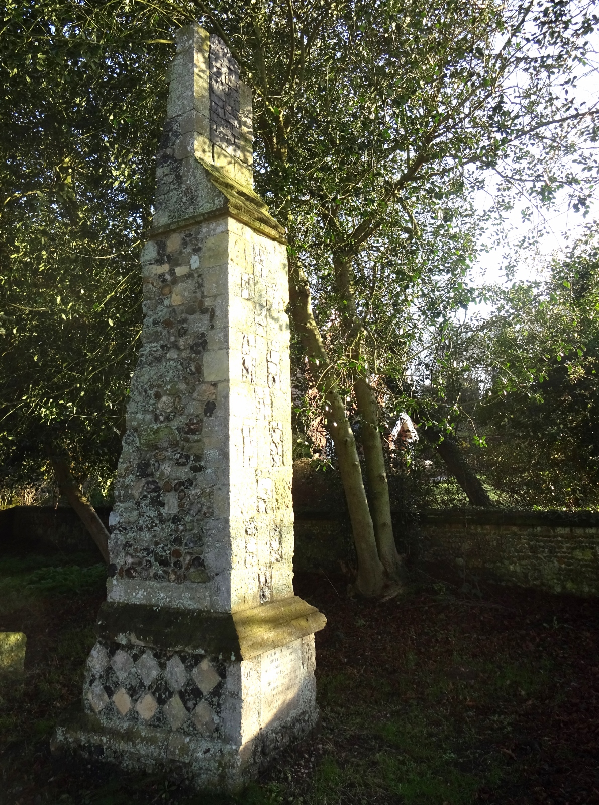 We then went a way inland to the churchyard of Dunwich village’s current Victorian church. The churchyard is really interesting actually; it contains the very nice ruins of a medieval leper chapel – i.e. the chapel attached to a leper hospital, which was placed a fair way outside the town walls due to people’s wariness of the leprosy. Also present was an isolated ruined buttress, which is the very last bit of All Saints’ Church mentioned above – when all but this one tower buttress had fallen into the sea, it was relocated inland to this churchyard.