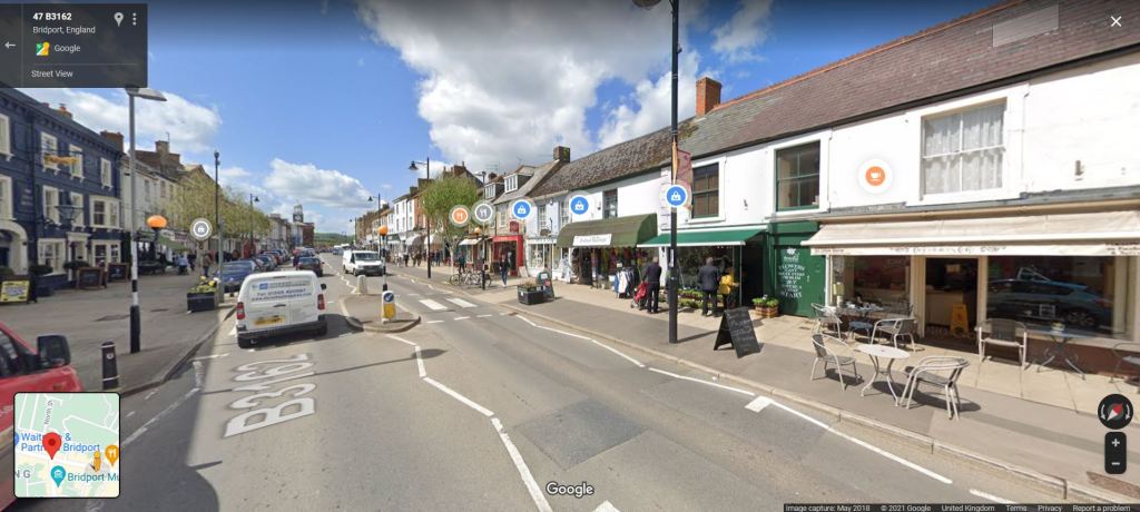 Bridport was the closest town to our holiday house, so I went over several times during the trip, the first indeed barely half an hour after we arrived at the house, to collect a shopping order from Morrisons! Later occasions of me coming back included to get some cheesy chips with curry sauce from a local chip shop, and to pick up som pizza from Domino’s.