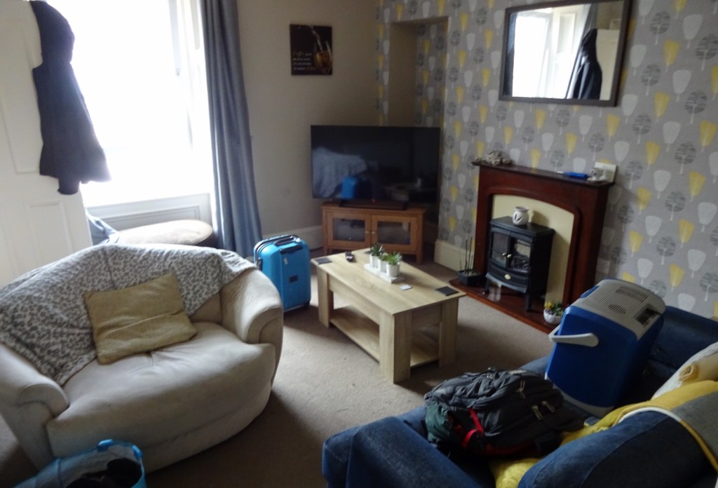 After dropping off my stuff and exploring the flat, I went out to buy myself both (a) some dinner, and (b) a cheap hairdryer, since I wanted to wash my hair and there wasn’t a hairdryer in the flat already. I got a hairdryer from a branch of Argos inside Hawick’s Sainsbury’s, and dinner was a pick-your-own salad from said supermarket, accompanied by some chips, cheese and curry sauce from a nearby kebab shop. I followed this with a quiet evening in; watching something or other as I ate my dinner, then washing my hair before bed.