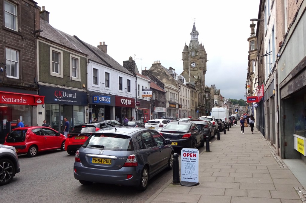 In the morning, I planned to depart reasonably directly, to get in another walk before meeting my school friends in the afternoon, but I took half an hour to wander around Hawick first. The high street is unfortunately also a main road traffic artery through the town, and has an unnecessary amount of on-street parking, but still it had plenty of shops and was busy with people going about their day. Hawick seemed a nice enough place, and I’d be happy to return. Perhaps one day the Borders Railway will finally get this far, as seems to be occasionally talked about!
