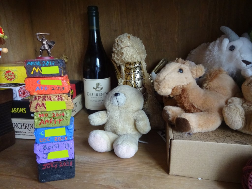 Somehow, I ended up winning the tournament! So, in our customary prize-giving event, it was I who received the coveted trophy, which consists of a single plastic warrior sitting atop a stack of painted polystyrene blocks, growing by one every time we have a tournament. The second and third prizes vary each time, the specification being that they just need to be “quite good” and “a bit disappointing” respectively: on this occasion Joystick in second place, received some Tunnocks tea cakes, while Cabbage in third got a packet of Spar Burger Bites crisps. Climbing Programmer bringing up the rear received the traditional toilet roll, which he was rather pleased with, as he’d just moved into a new house the very day before joining us for the trip, and was in need of some!