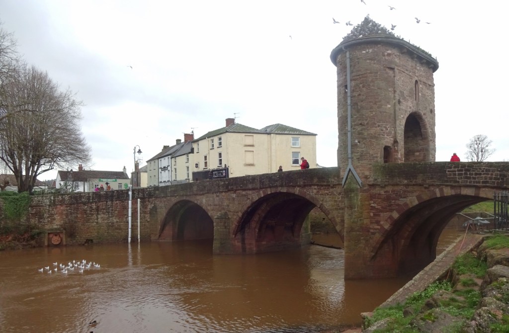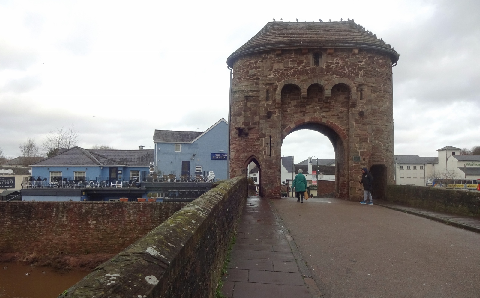 By far the most notable, though, was the 13th-century Monnow Bridge. All surviving medieval bridges are cool, of course, but this one is especially cool – and unique in Britain – for retaining its fortified gate tower. We spent a good long while wandering around, over, and in my case under the bridge and generally appreciating it. An interpretation board told us of the wide range of uses the tower has been put to over the years, including a private dwelling! The bridge was in regular use by road traffic right up until 2004, when the sensible decision was made to pedestrianise it – apparently lorries were regularly getting stuck in it.