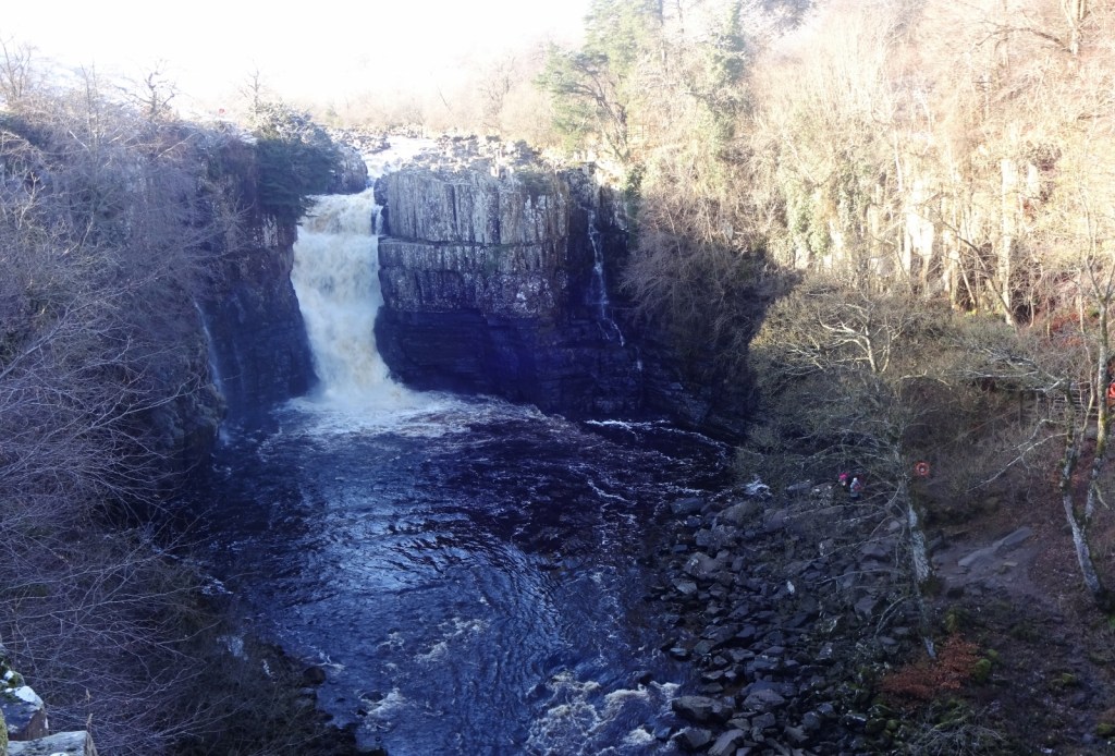 High Force has the distinction of being England’s biggest waterfall by volume. Britain is of course not particularly famous for its waterfalls, and we can’t compete with Iceland or Canada or wherever in the slightest, but still, High Force is certainly big enough to be impressive, and we stood there gawping at it for a good five minutes or so – long enough for a couple to arrive with their dogs, stand there for a bit and leave again.