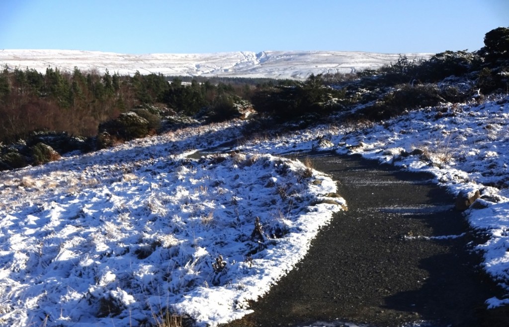 After the waterfall, we decided to turn back rather than extend our walk; it was rather cold and Vesper was having some real problems keeping her hands warm – the only pair of gloves she owned was a fairly thin pair, and even after she’d swapped them for my thicker ones, the damage was done until we could get them warmed up. The return walk by the same route was just as nice as the way out, and we soon got back to the car, warmed ourselves, and ate our packed lunches before driving back towards the house. We didn’t, in the end, stop to see Low Force a few miles down the dale – it is, as you might expect, lower than High Force both in altitude and drop, but is said to be equally if not more dramatic. I must come back some day! Our day of snowy walks continued back in Tow Law, as we went for a tramp around Hedleyhope Fell nature reserve, but you can read about that in MY PREVIOUS POST!