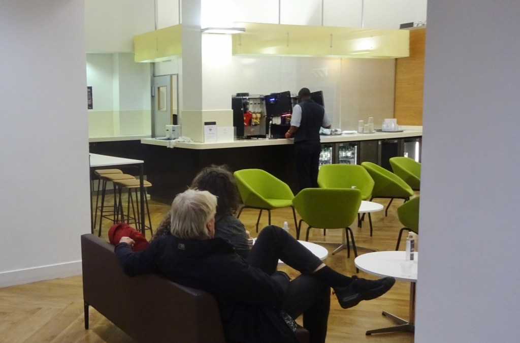 Arriving at Paddington, I had a quick look in the GWR first-class lounge, open to everyone who’s booked a sleeper berth – it was fine, nothing particularly special: coffee-shop style chairs and some biscuits and tea available. I then went ahead and boarded the sleeper. Boarding was a little challenging: the staff who’d normally give you your key and show you to your room were few and far between, but I eventually worked it out by entering the lounge car and asking the person at the bar.