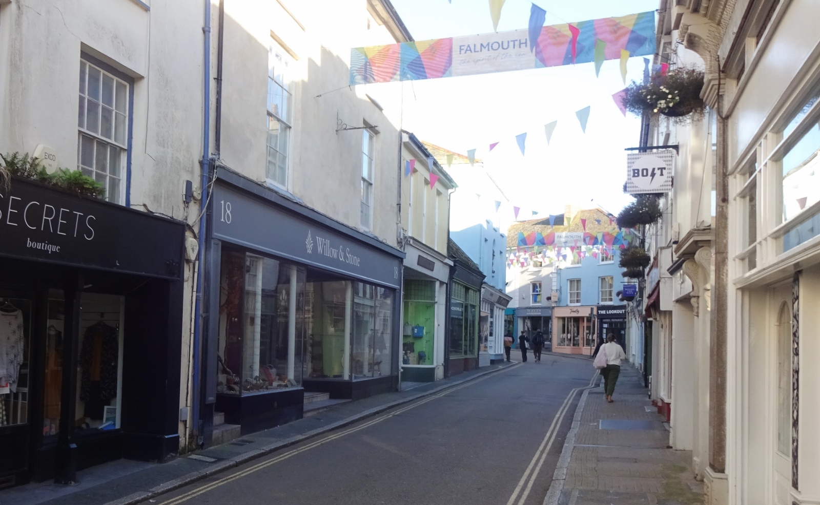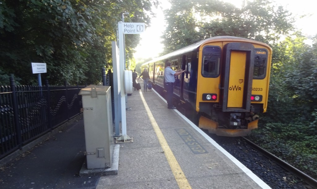 I was intending to get off right at the end of the sleeper journey at Penzance or St Erth, to then head up to St Ives, but as it turned out, the train was 45 minutes delayed. I’d finished my breakfast by 7:30am and felt impatient to start my day rather than waiting another hour to get to Penzance, so I got off early, at Truro, switching around my plans for the day a bit. I didn’t leave the station – I’d be returning to Truro later – and instead got straight on the waiting connecting train to take me down the branch line to the seaside town of Falmouth.