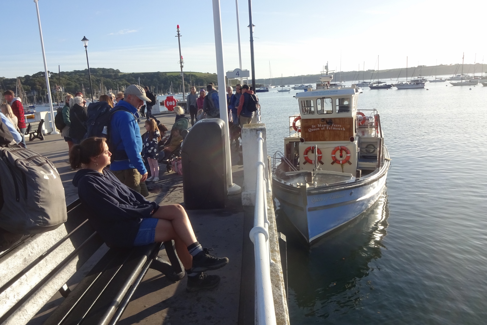 I walked through Falmouth to get to the pier the ferry would be going from, and the town seemed very nice, though it was very quite at 8am on a Saturday morning. The pier, by contrast, was heaving: the ferry itself looked pretty small, and I wasn’t at all sure how the eighty or so people who seemed to be waiting were going to get onto it, but in the end, we all boarded comfortably – it was a rather Tardis-like boat! I stayed outside at the front during the 20-minute crossing, which was a good decision, as the views were great.