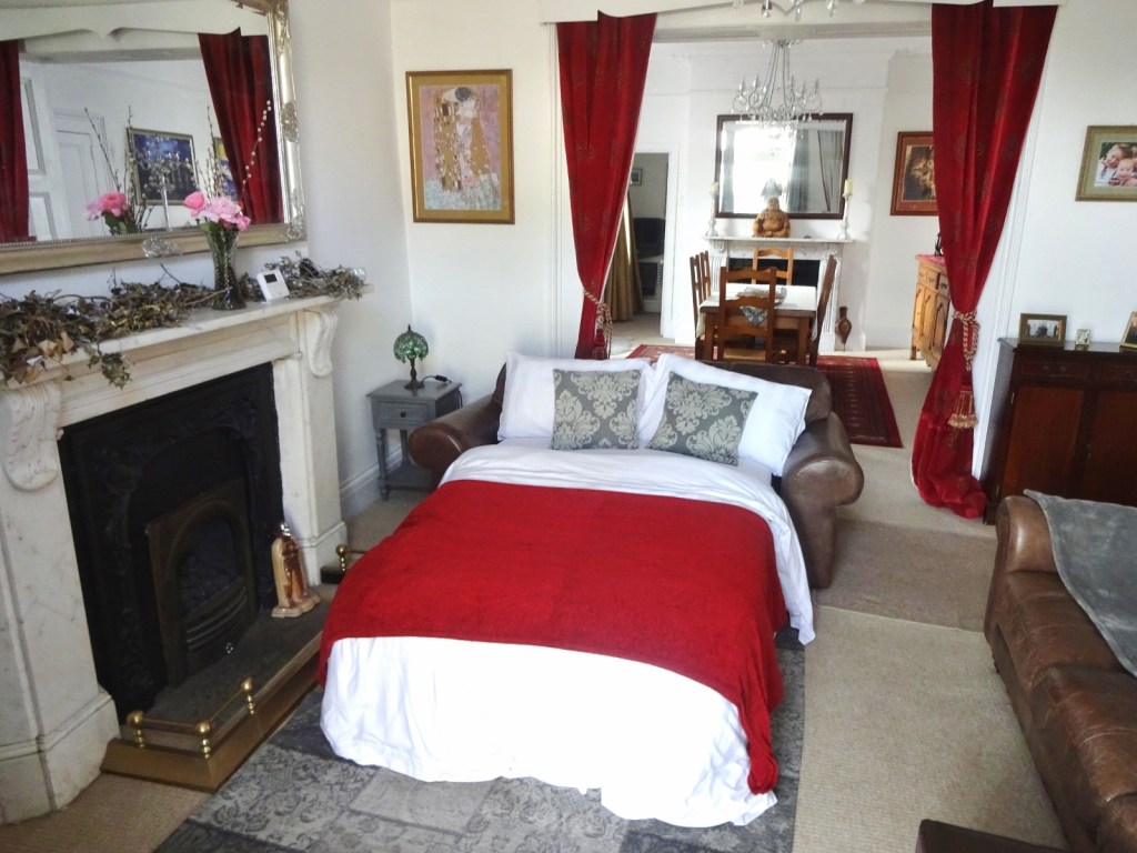 The 87A bus to Tavistock, admirably scheduled to meet the trains, was waiting at Bere Alston when I arrived, and I enjoyed seeing Dartmoor peep out between the trees occasionally during the journey. In Tavistock, I was staying in an Airbnb room very close to the bus station, which was very nice but had rather an unconventional setup: instead of renting out a bedroom in their house, this host rented out the sitting/dining room, which had an attached bathroom and a cute little conservatory. My bed was a very prettily-made up sofabed, looking rather incongruous in front of the dining table and sideboard!