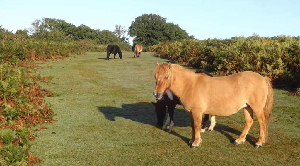 The Down was lovely; it’s shot right up to near the top of the list of my favourite green spaces. Part of it was open grassland, cropped close by the wandering sheep, while other areas were covered in ferns and spiky bushes, with cows and Dartmoor ponies pottering about between them. The pointy-roofed structure you see in my photos was also very odd: it was a small triangular stone building, with benches running the length of each side, and no discernible means of accessing the inside. I suppose it was probably built just as an interesting bench-cum-folly, but there is space for a small room inside, so it’s puzzling that there’s no way in!