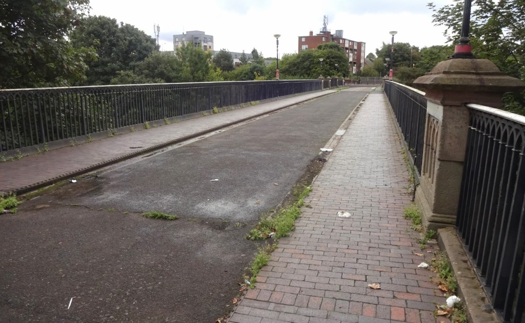 I popped briefly into the park itself, which seemed pretty unremarkable, after which I passed through a mostly industrial area before crossing the rather impressive Galton Bridge itself. The nearly 200-year-old iron bridge passes very high over the canal below, and is quite pretty to look at from below, but the top of the bridge, now part of a little-lo bridge deck, now used only as part of a cycle path, is rather unloved.