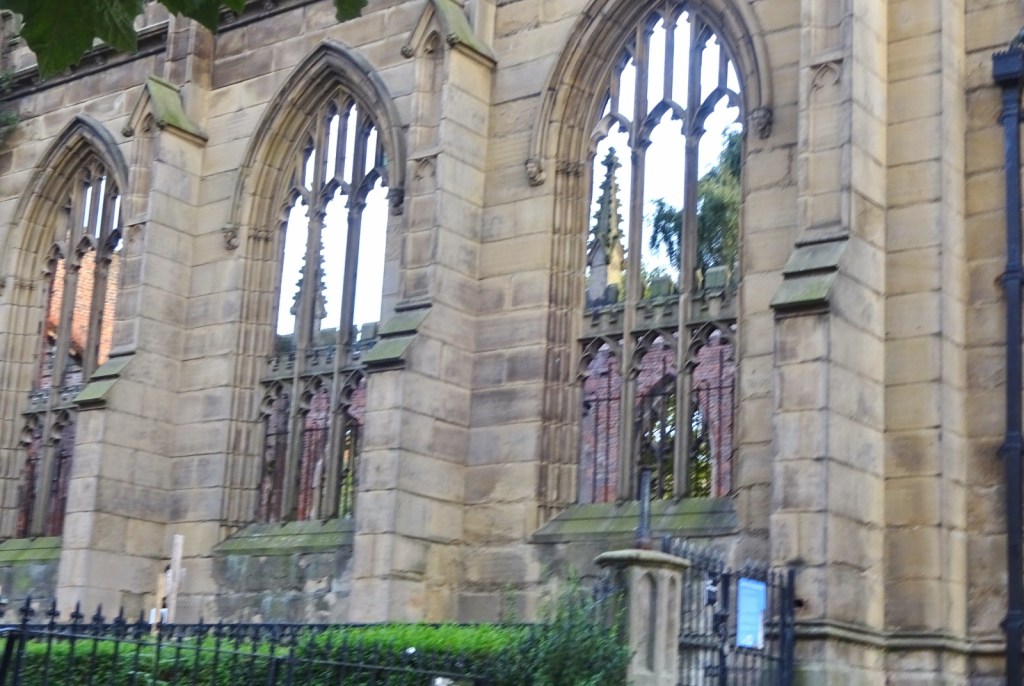 I did, though, go over for a look at the Church of St Luke, which was bombed in the war, and has been left as a roofless shell as a memorial. Unfortunately it was locked, so I couldn’t go inside, but it was still interesting to look at – I could see it for a long wasy as I approached across the city, and since its tower and walls are complete, it’s not at all obvious it’s a ruin, until you get close enough to see that the windows have no glass in, and you can see open sky through them instead of a roof. It also just looked very pretty in the evening sun!