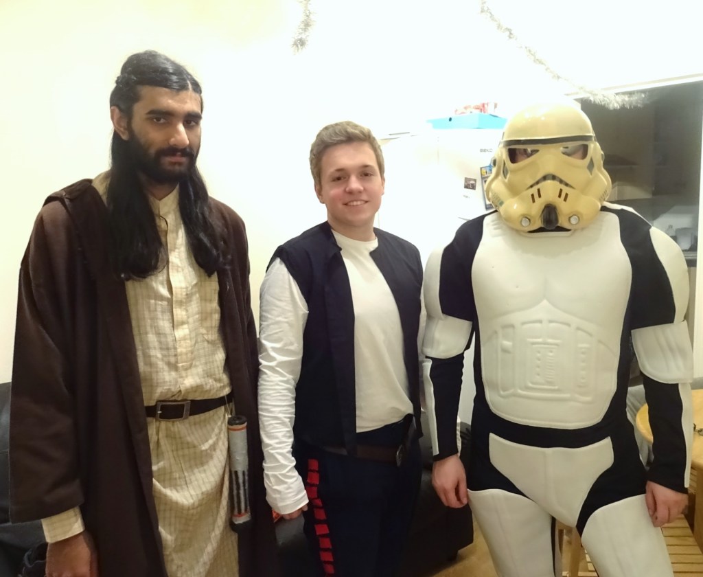 My school friend Joystick went to university in Sheffield, so I travelled there a couple of times to visit him. One particularly memorable occasion, and the only one for which I can find any photos, is when Cabbage and I visited him there in December 2015, to go to watch Star Wars: The Force Awakens on its opening night, and in costume!
