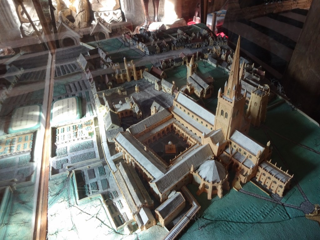 On that occasion, we decided not to go into the town museum, the Almonry, but I did so the very next Saturday, on another blog-in-Costa trip, and enjoyed it – there were some nice Anglo-Saxon coins, a fun model of the Abbey in its prime, and a big table map of the area showing movements around the Battle of Evesham overlaid on the present-day town and surroundings. The building itself is very cool, a nice rickety, winding medieval building. It was also actually focussed pretty much exclusively on the town itself, rather than having the all-too-frequent local museum assortment of (a) taxidermy and (b) second-rate, mediocrely-curated artifacts from around the world courtesy of some local Victorian collector/thief.