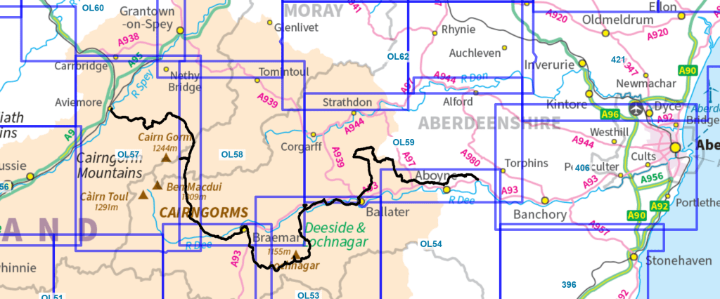 OS Explorer map OL53, Lochnagar, Glen Muick & Glen Clova: Ballater & Balmoral – I do not own this map, and had not visited it before starting this blog. Visited for this post 2nd July 2024.