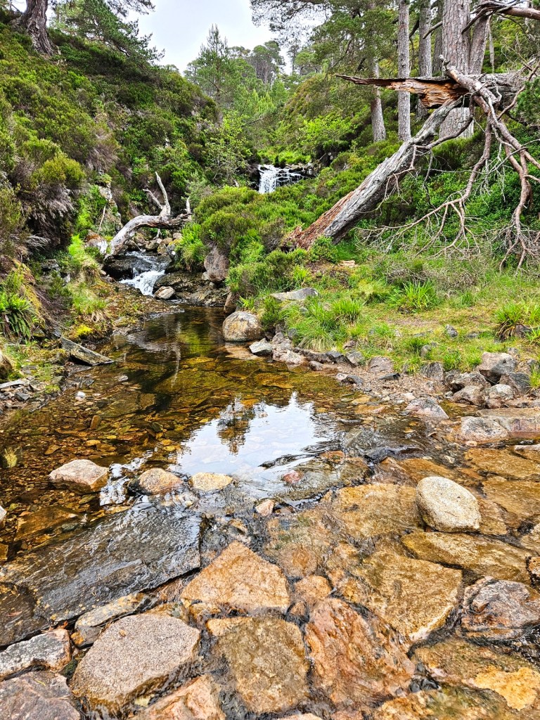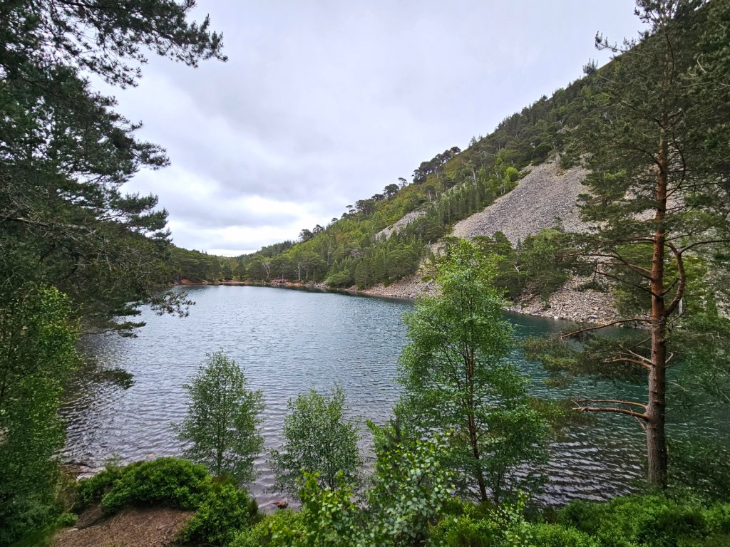 Once I was packed up, I walked around the other side of the loch, past the caravan park and Glenmore Lodge, in the direction of An Lochan Uaine and Ryvoan bothy. Despite it being a grey day, An Lochan Uaine was really beautiful, though I don’t think the photos do it justice.