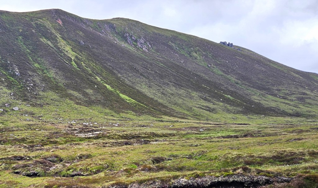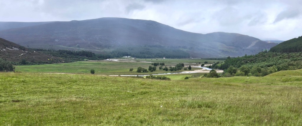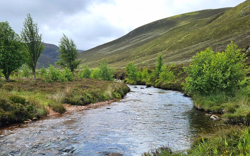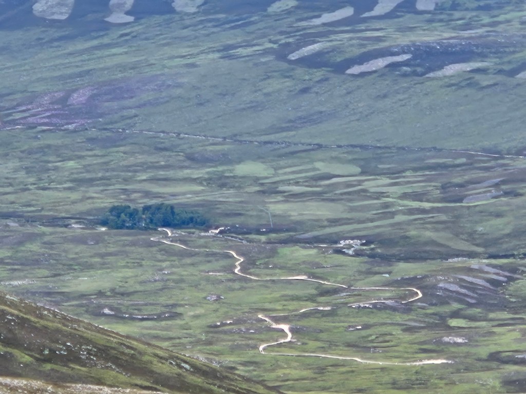 From there, my next couple of miles took me down a valley which I don’t see named on the map, to descend into Glen Avon, meeting it at the Fords of Avon, at a kind of crossroads of three/four glens, since another valley and stream flows in to Glen Avon from the south at the same point.