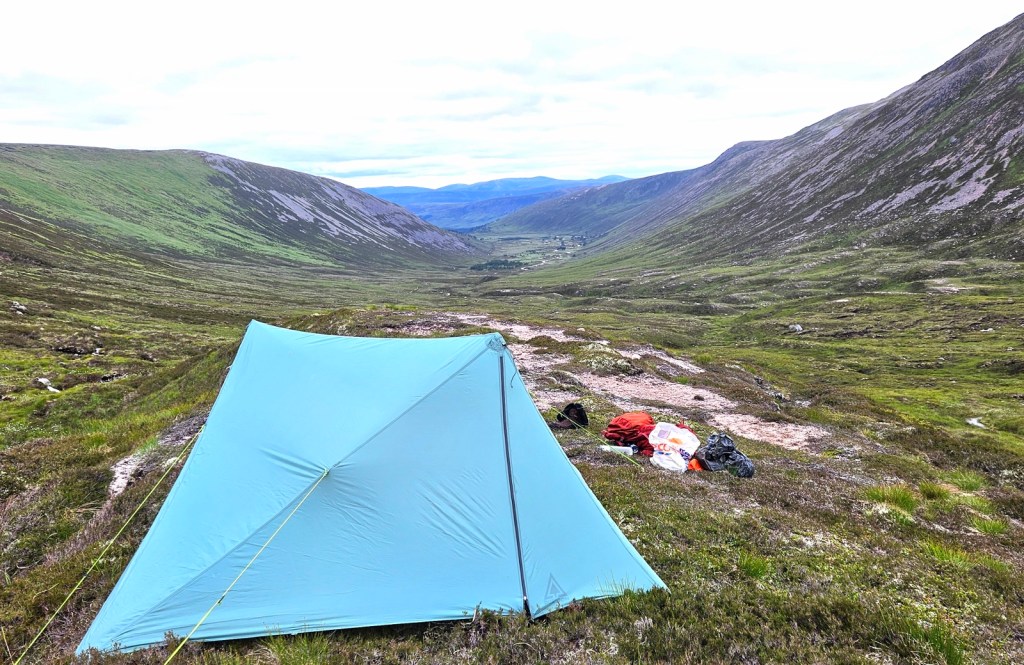 I stopped for the night just over the pass into Glen Derry, which was a really pretty spot, letting me look from my tent down across the whole wide valley.