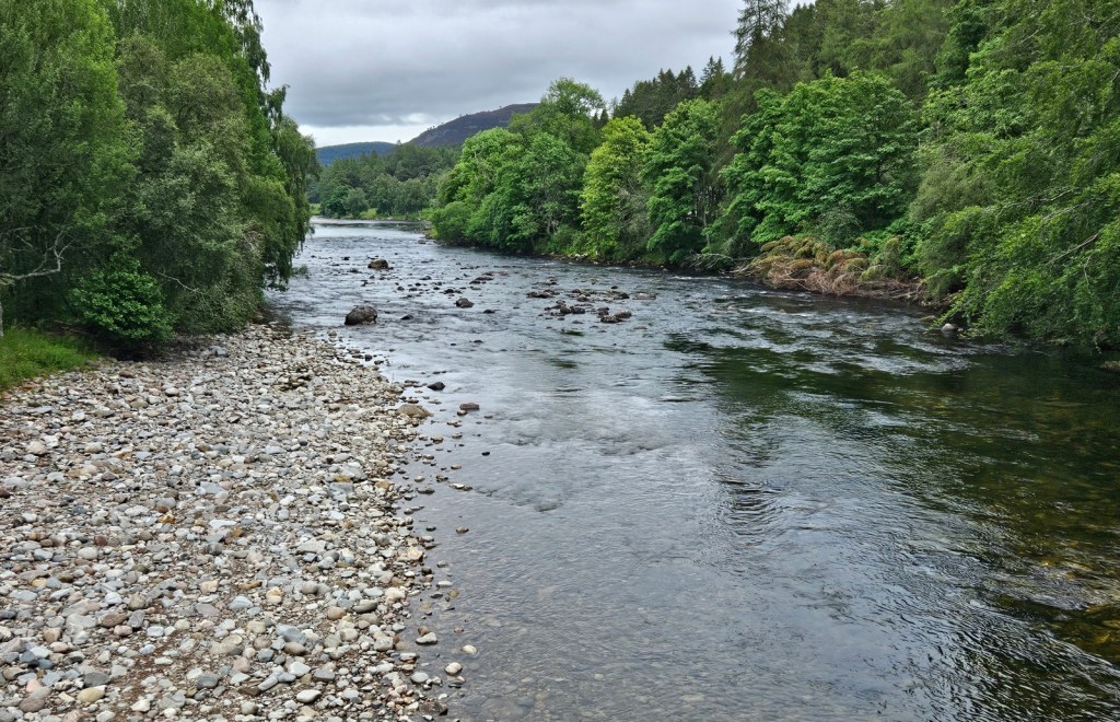 Having my big backpack with me and being an obvious long-distance hiker does rather get conversations going and various café patrons chatted to me – one group had been up Lochnagar the day before some three hours before me, but it had been too cloudy at the summit to see anything. A couple of older local chaps from Ballater were alarmed to hear that I was planning to walk into Ballater, but were mollified when I said I’d take the south side of the river rather than walking along the A93, which they were concerned would be unsafe.
