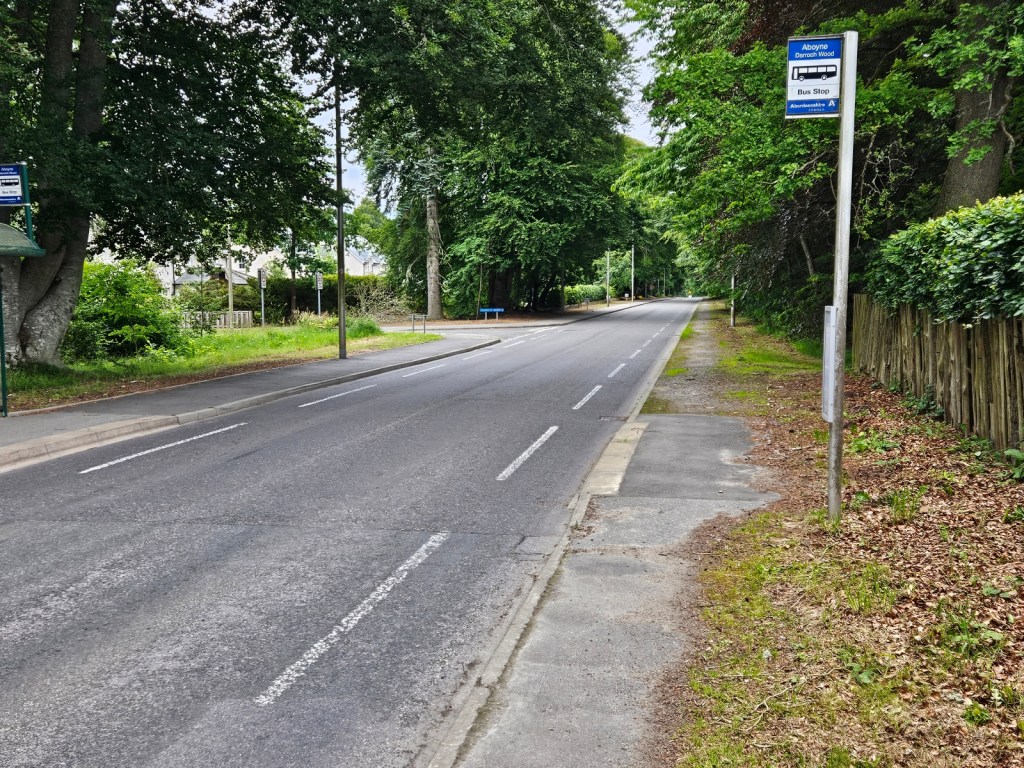 In the end though, when Saturday arrived, the forecast had improved slightly, with the rain not expected to start until about 11am, so I decided to do just a little bit of walking before starting my travel back. I got the bus from Ballater to Aboyne to pick up where I left off the afternoon before, and headed east for about 7 miles, ending at Kincardine O’Neill.
