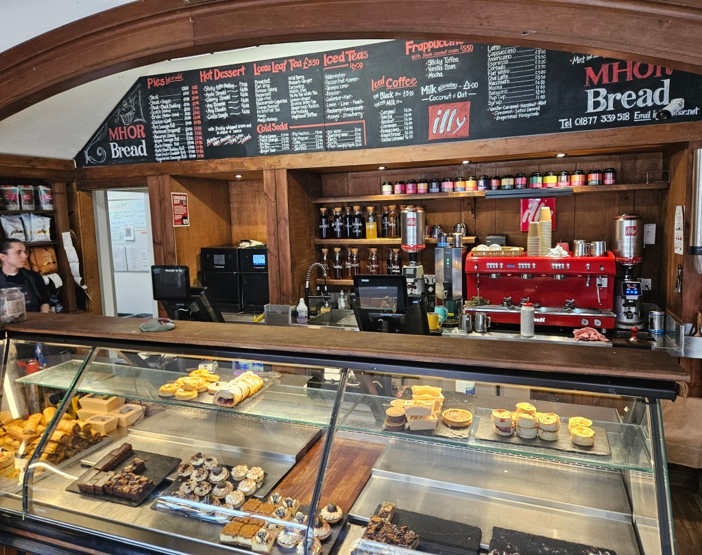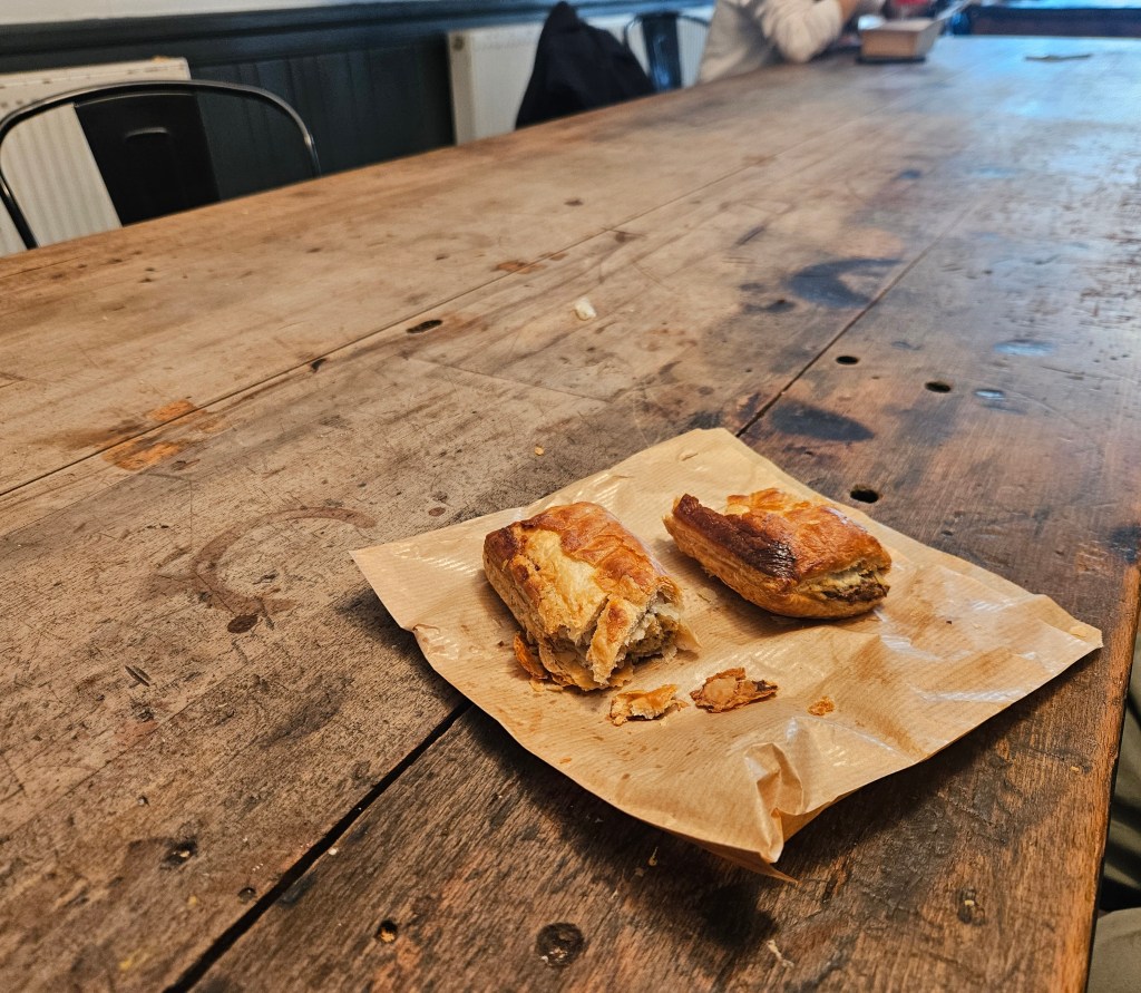 Following that, we sat in the excellent little bakery Mhor Bread – they had such a great selection of little pies and rolls and stuff, including a lot of interesting looking veggie options, plus a dining room where we sat at a fun giant old wood table with our hot drinks and pastries.