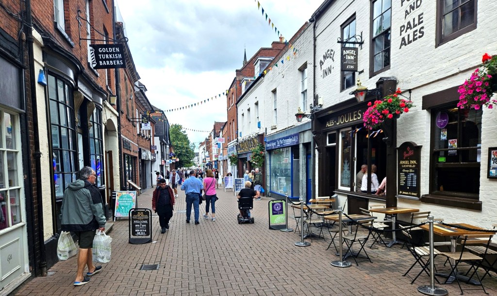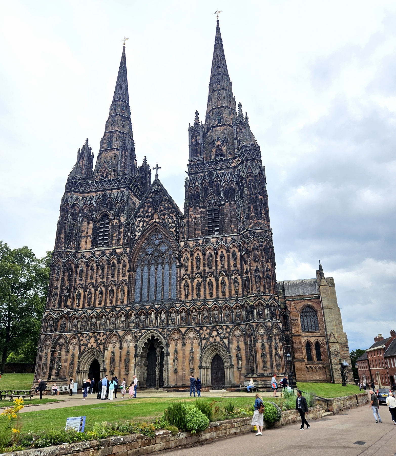As mentioned, we’d originally planned to visit Vesper’s family in Lancashire on the Saturday. While that didn’t end up happening, we’d already booked to stay overnight well over halfway through the drive back from Harris so that we’d have some time there, meaning that we only had about four hours left to do on the Saturday to reach my parents’ house in Northamptonshire – where we’d return their car, be reunited with our dear cats, and then ask nicely for my parents to drop us home to Moreton-in-Marsh. We made one stop during that drive, in this map area, to visit Lichfield!