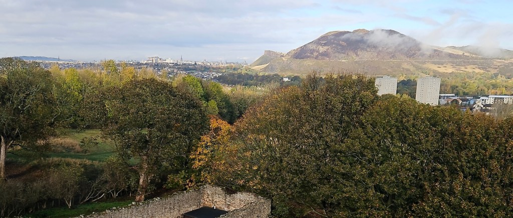 In particular, I saw Craigmillar Castle, which was just great – it’s a ruin, but an amazingly complete one. Most ruined castles you go to, you can just walk around the ground floor, and maybe if you’re lucky go up a tower or two. But in Craigmillar, pretty much all the floors are intact, and you can explore dozens of little rooms and go onto the roof for a great elevated view in all directions, including north to the Old Town, Edinburgh Castle and Arthur’s Seat.