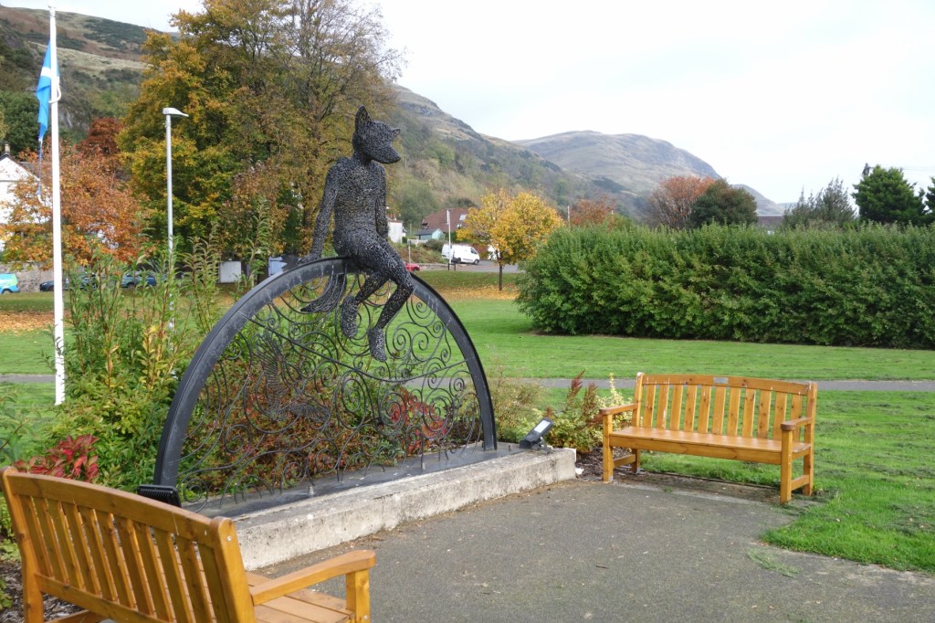 We had a very short wander around Menstrie, seeing the slightly odd “Foxboy” statue and the outside of Menstrie Castle, before driving off.
